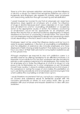 of alcohol or drugs. Our labour laws recognise addiction as a form of